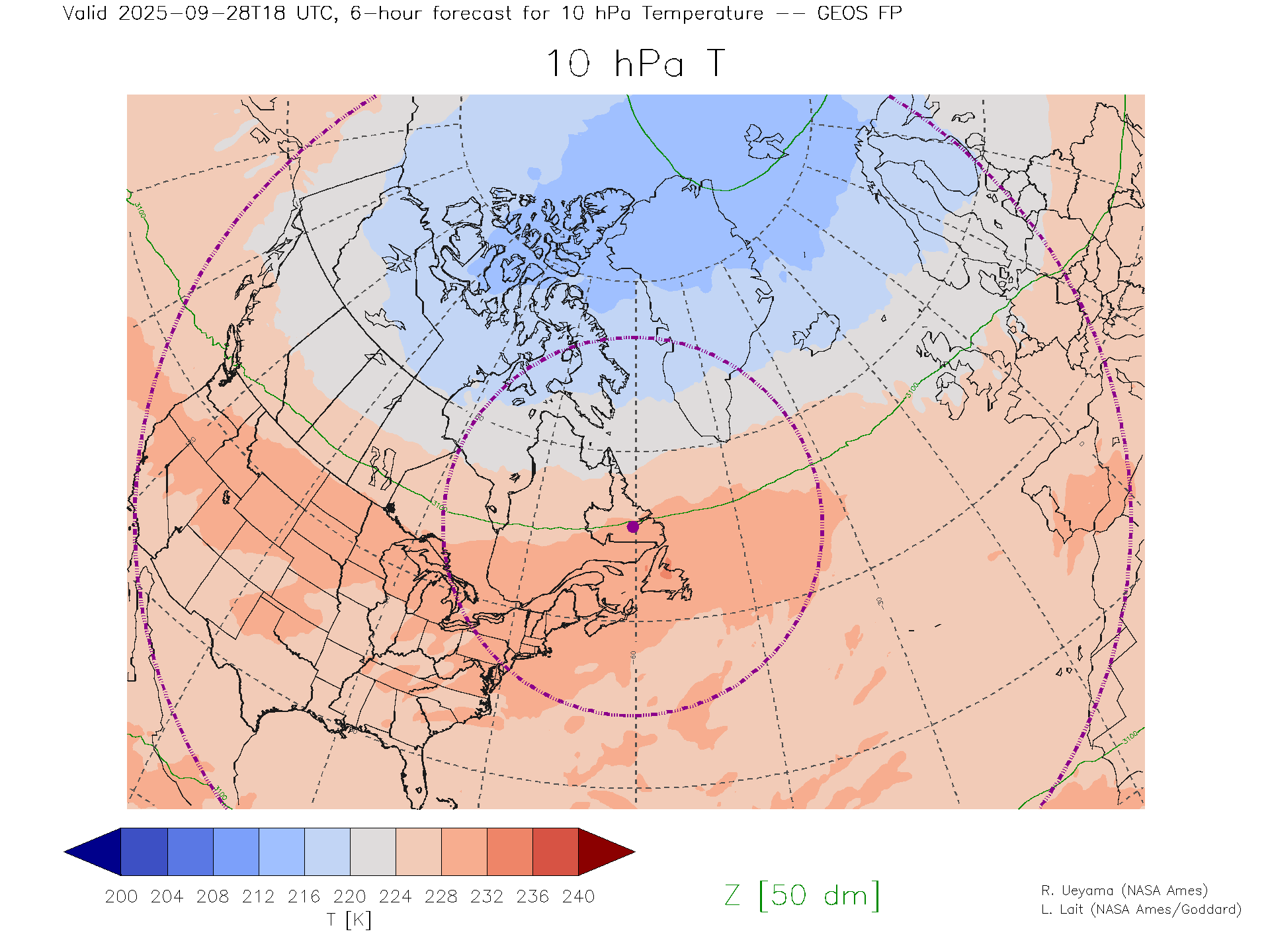 GEOS Forecast 10 hPa Temp.