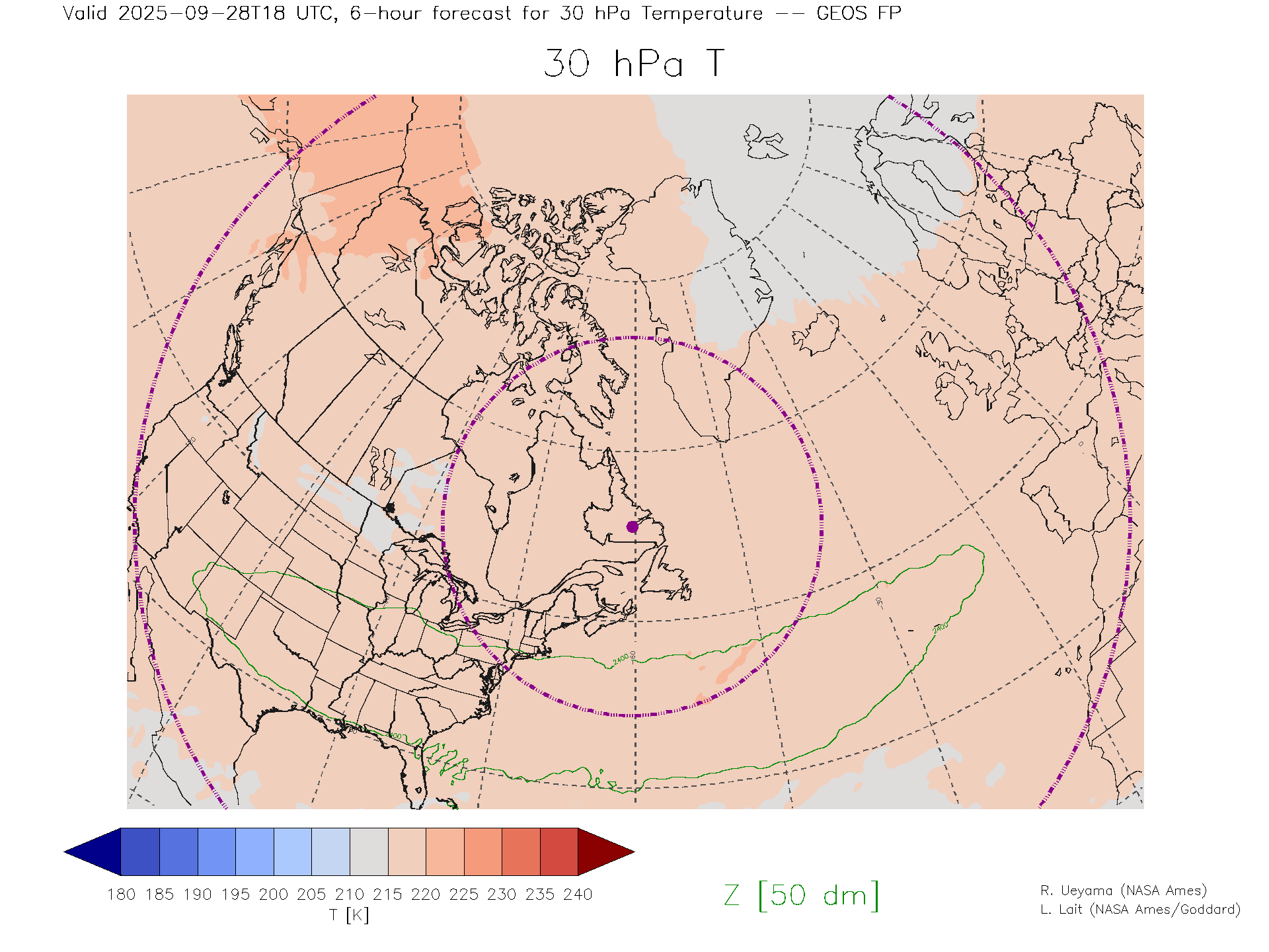 GEOS Forecast 30 hPa Temp.