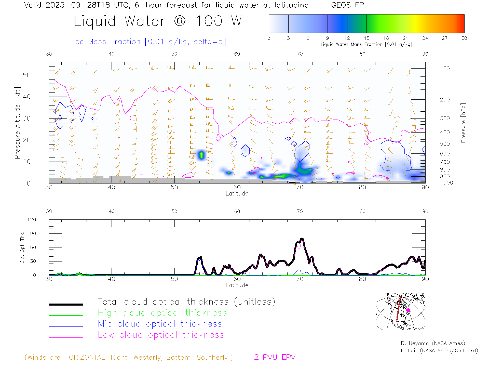 GEOS Forecast Cloud Water Content X-Section (100 W)