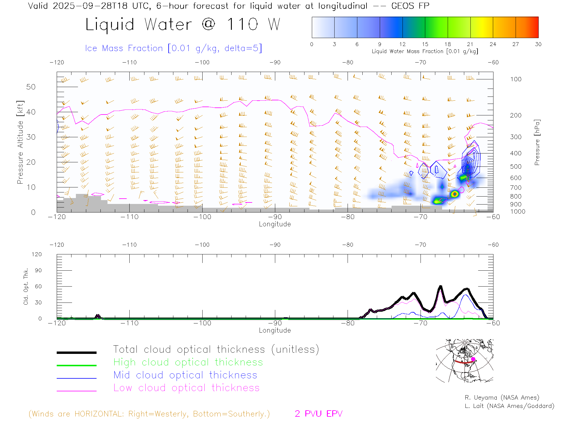 GEOS Forecast Cloud Water Content X-Section (50 N)