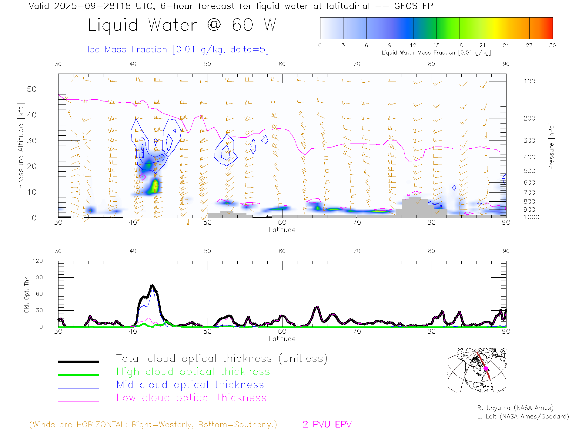 GEOS Forecast Cloud Water Content X-Section (60 W)
