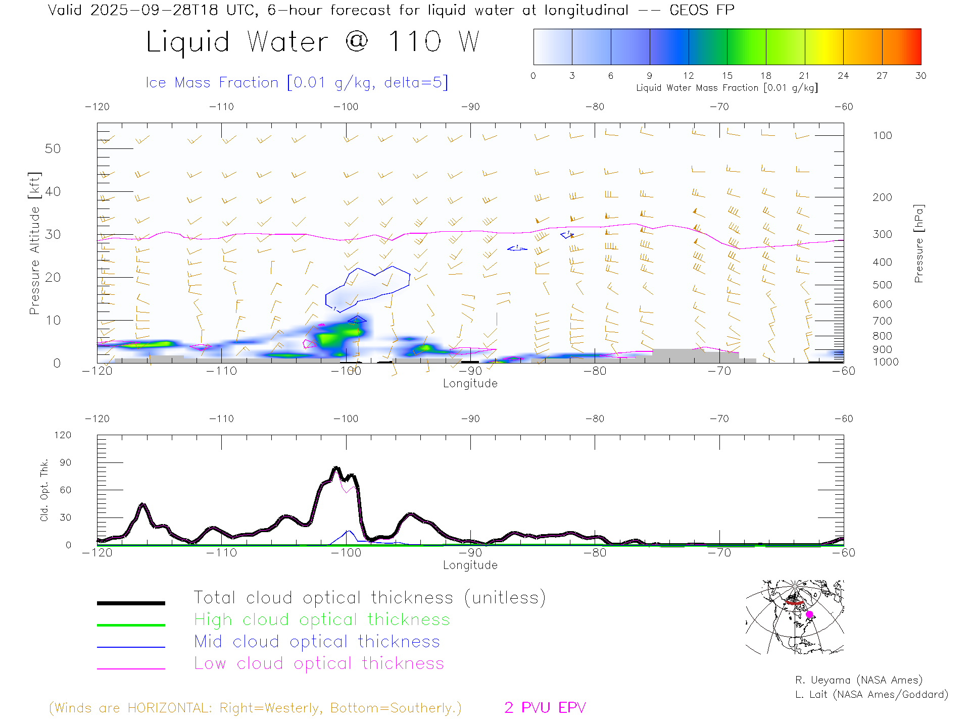 GEOS Forecast Cloud Water Content X-Section (70 N)