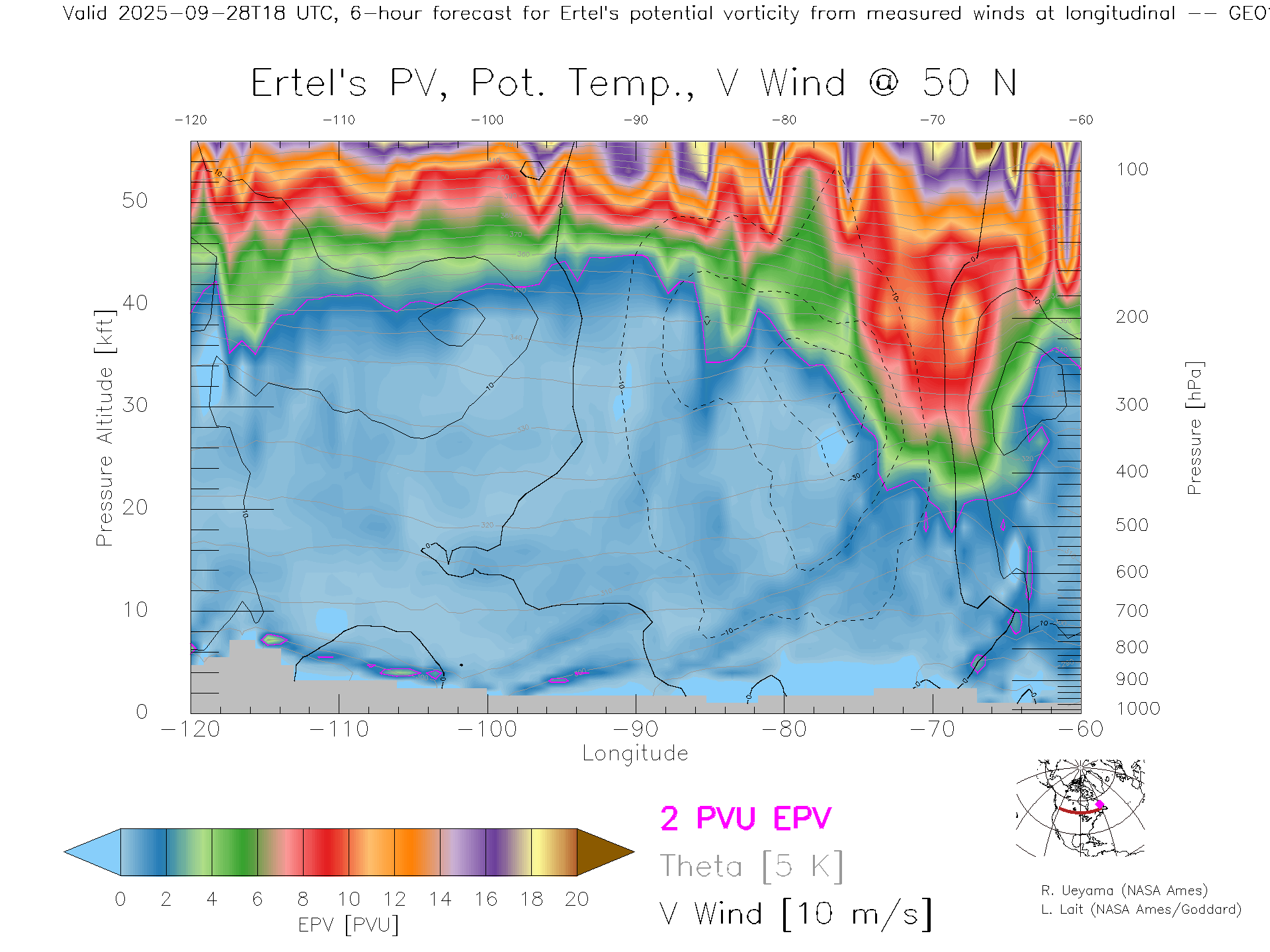 GEOS Forecast PV X-Section (50 N)