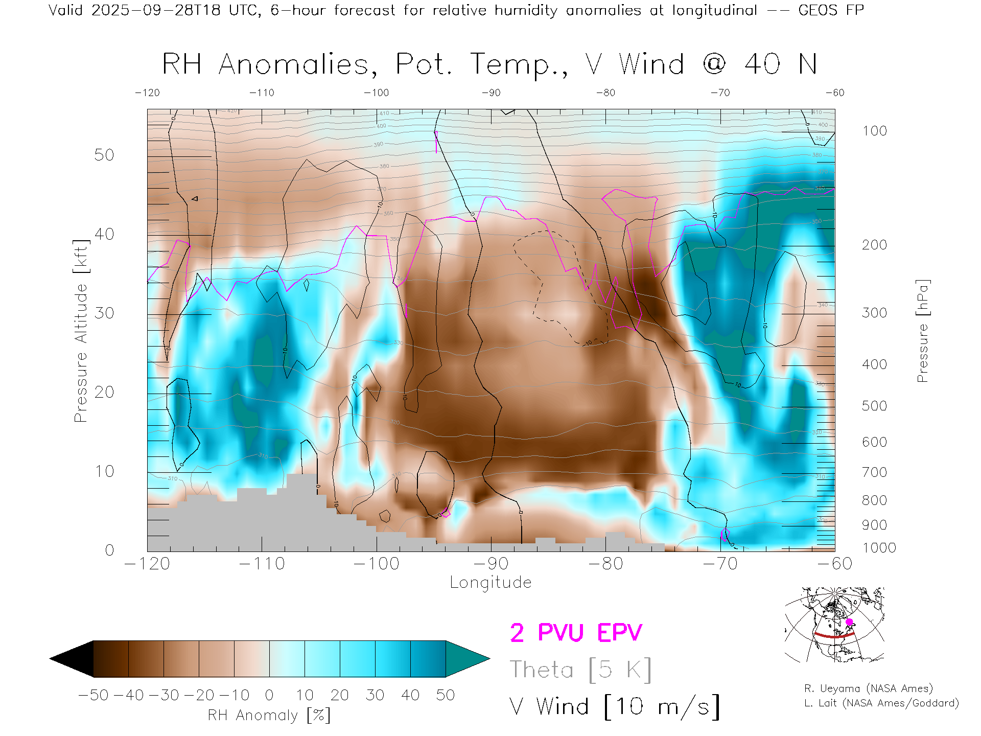 GEOS Forecast Rel. Hum. X-Section (40 N)