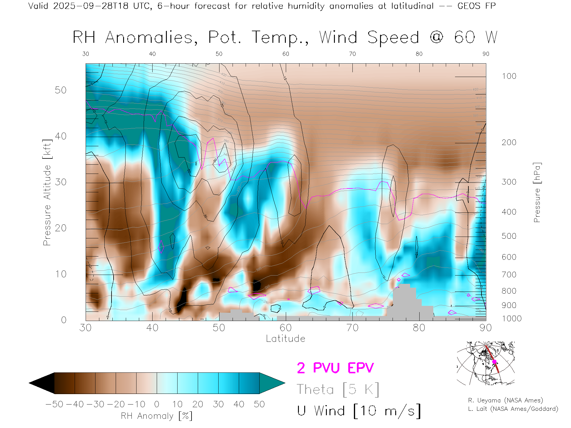 GEOS Forecast Rel. Hum. X-Section (60 W)