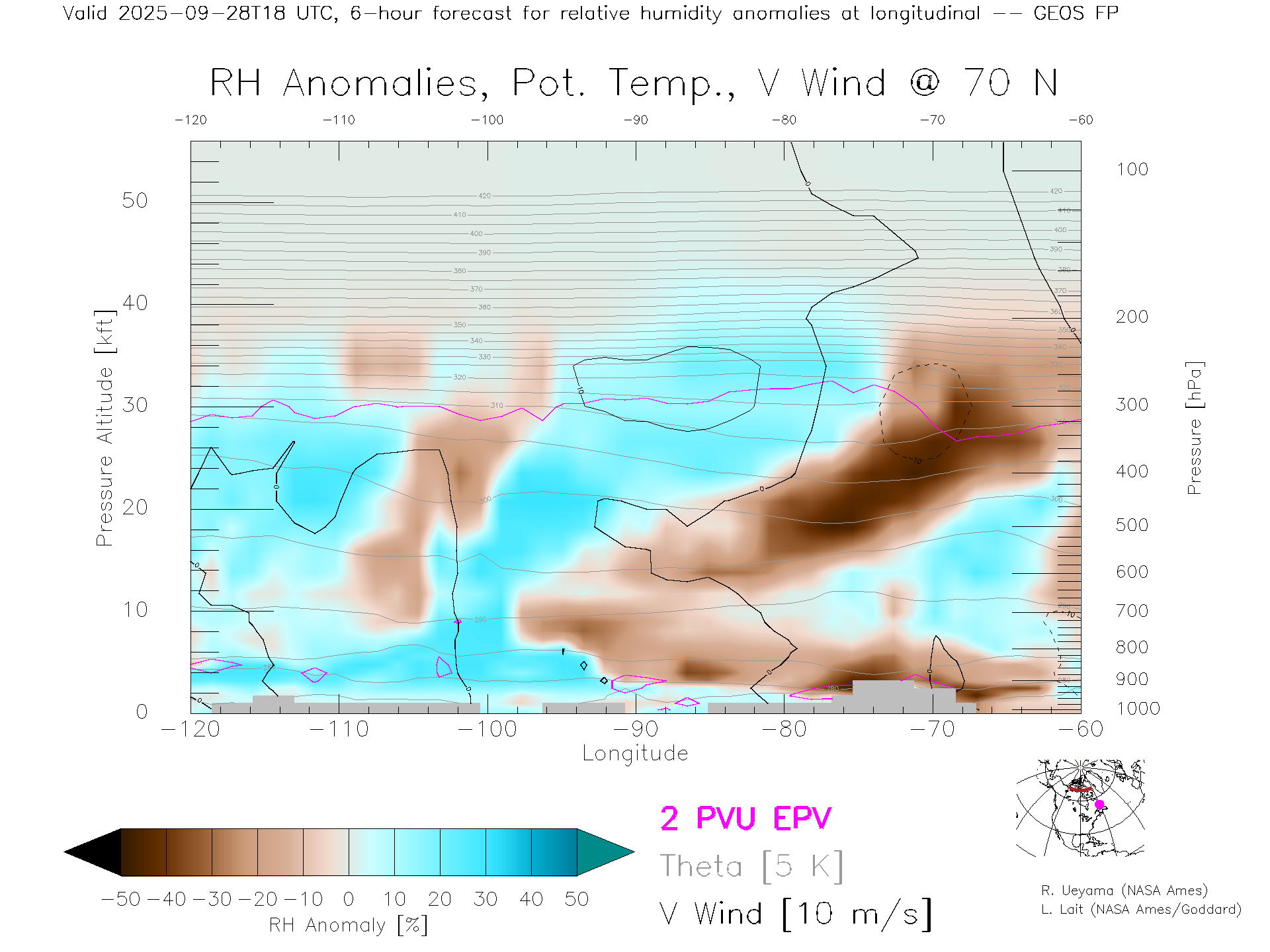 GEOS Forecast Rel. Hum. X-Section (70 N)