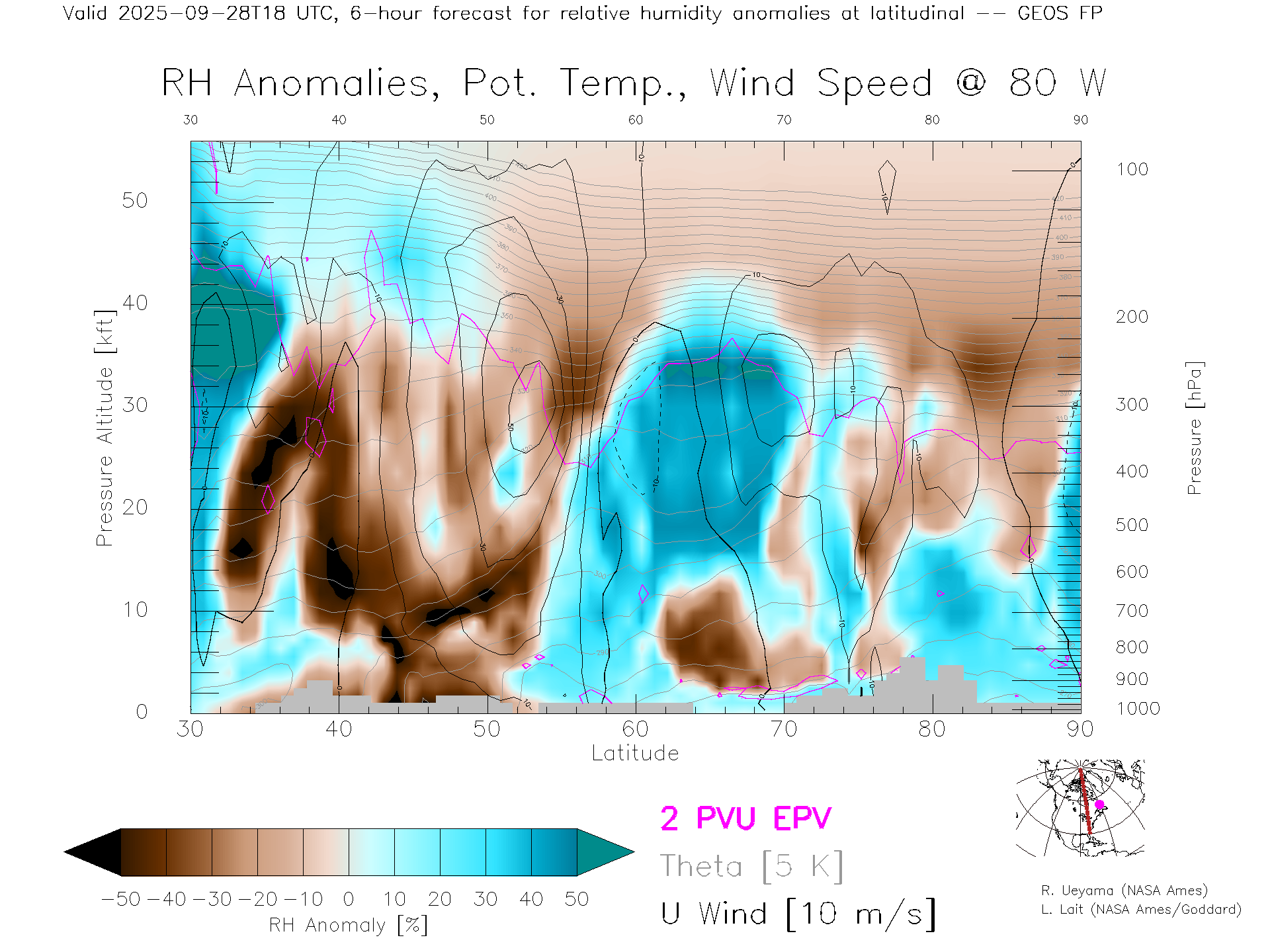 GEOS Forecast Rel. Hum. X-Section (80 W)