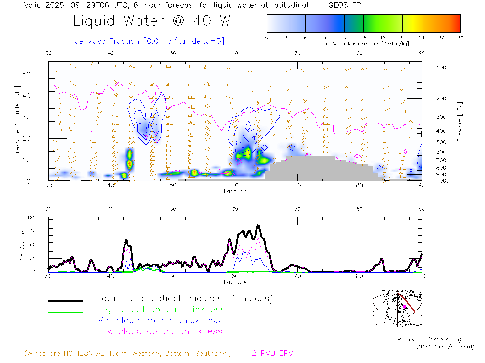GEOS Forecast Cloud Water Content X-Section (40 W)