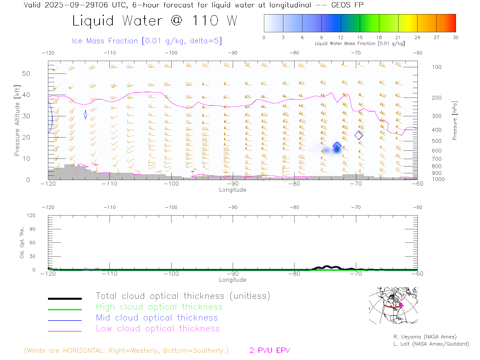 GEOS Forecast Cloud Water Content X-Section (50 N)
