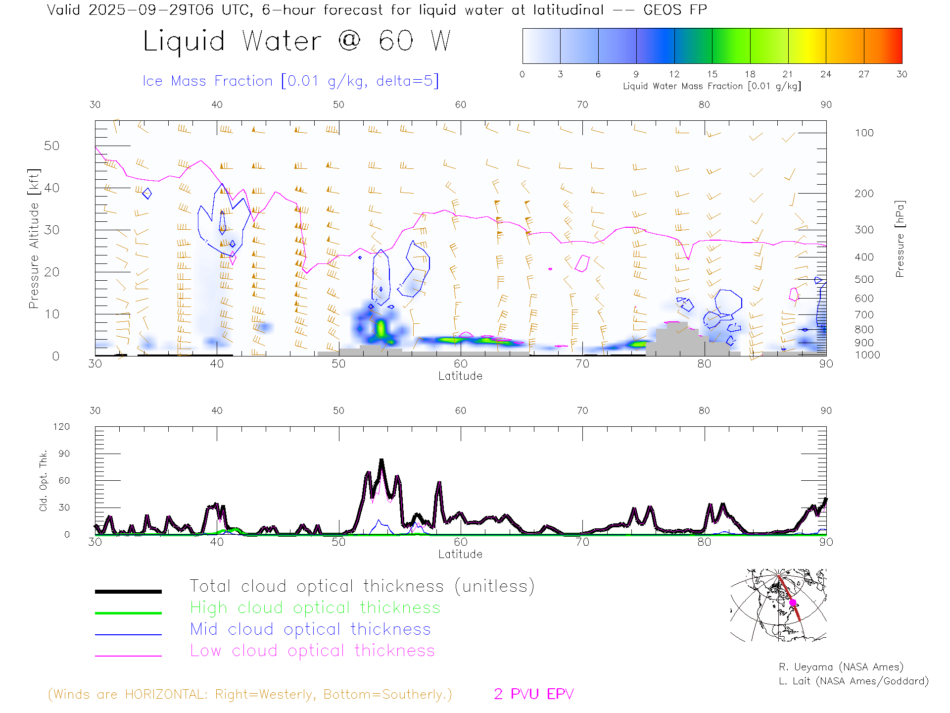 GEOS Forecast Cloud Water Content X-Section (60 W)