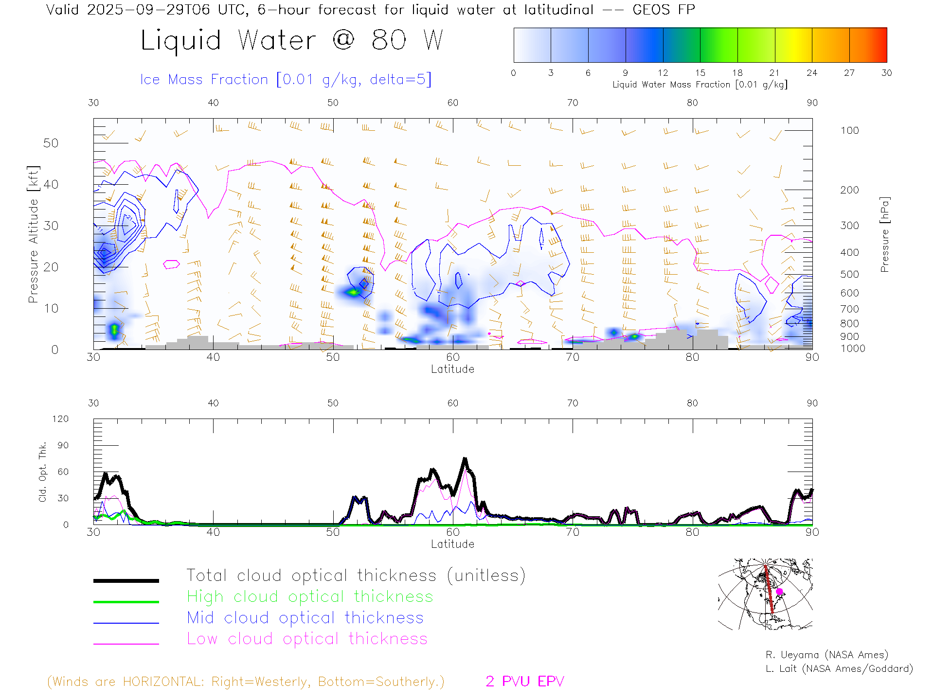 GEOS Forecast Cloud Water Content X-Section (80 W)