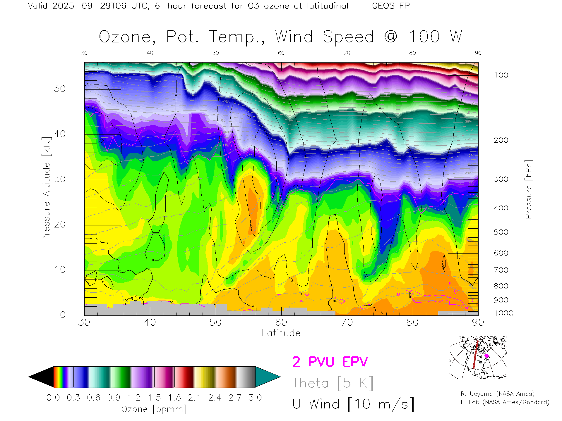 GEOS Forecast Ozone X-Section (100 W)