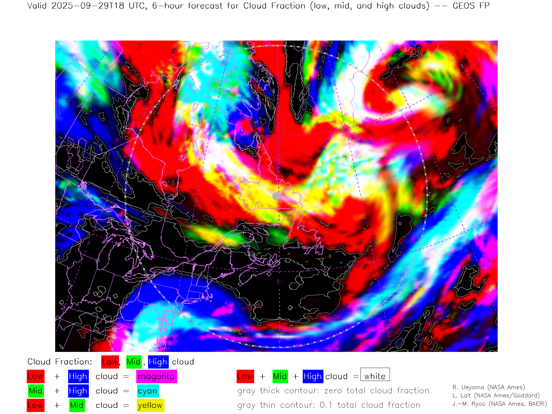 GEOS Forecast Low-, Mid- and High-level Cloud Fraction