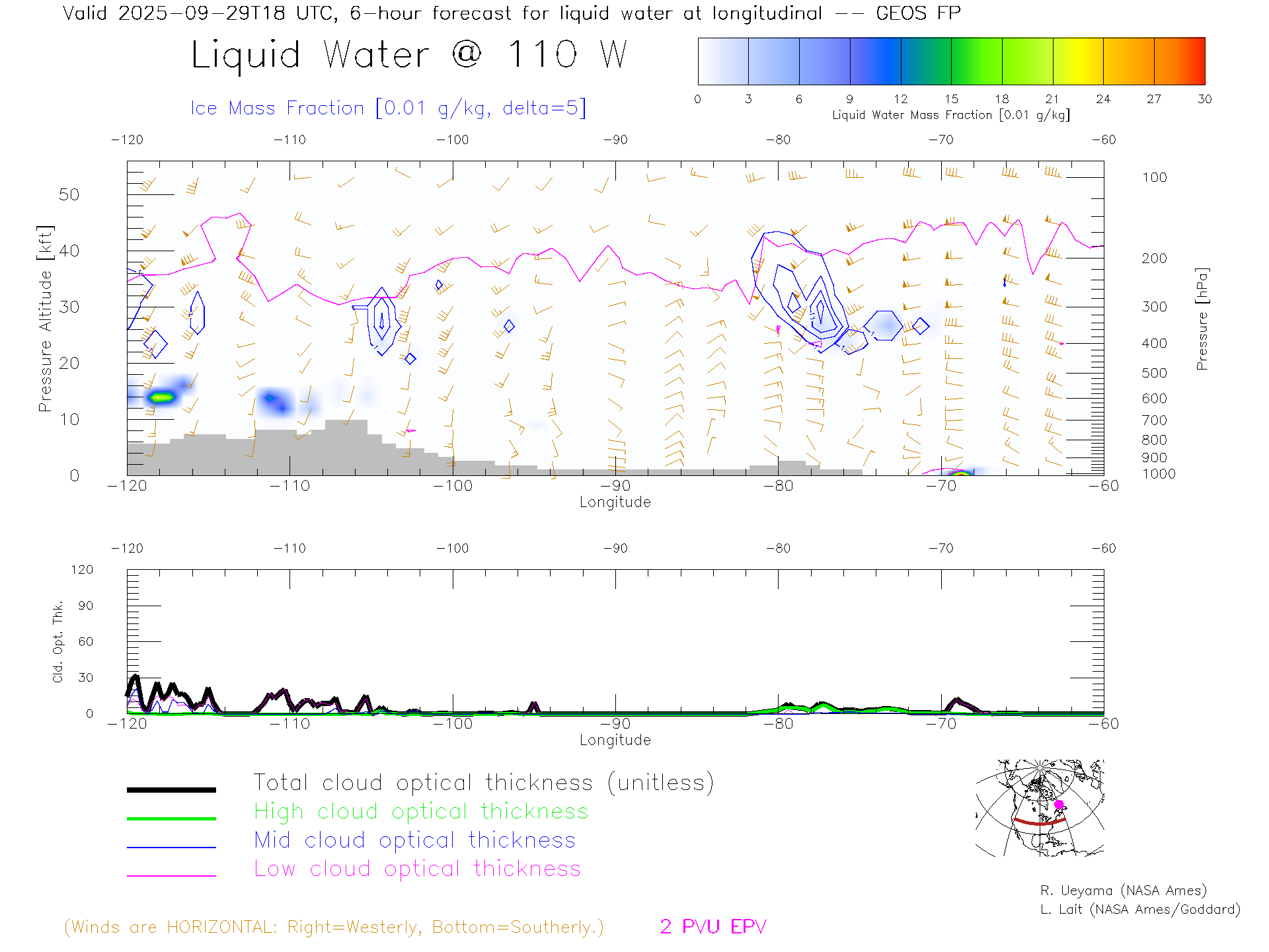 GEOS Forecast Cloud Water Content X-Section (40 N)