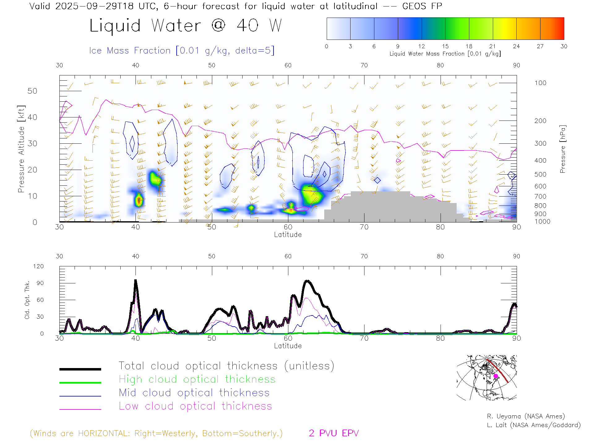 GEOS Forecast Cloud Water Content X-Section (40 W)