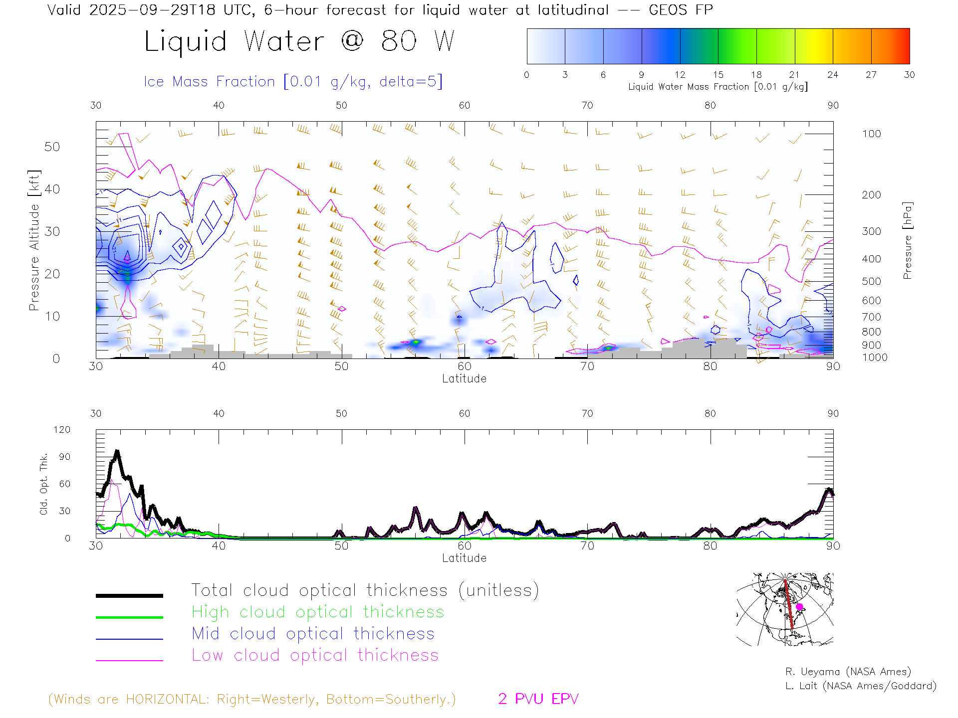 GEOS Forecast Cloud Water Content X-Section (80 W)