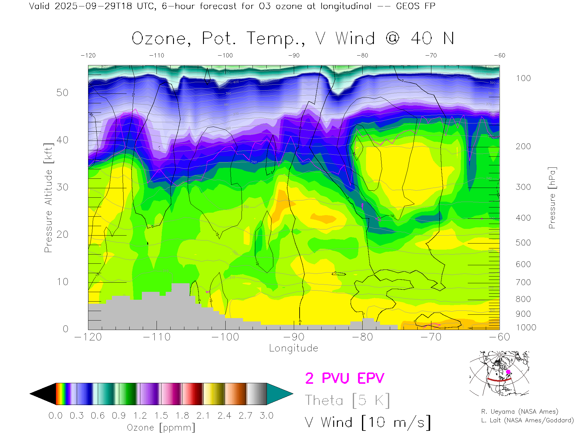 GEOS Forecast Ozone X-Section (40 N)