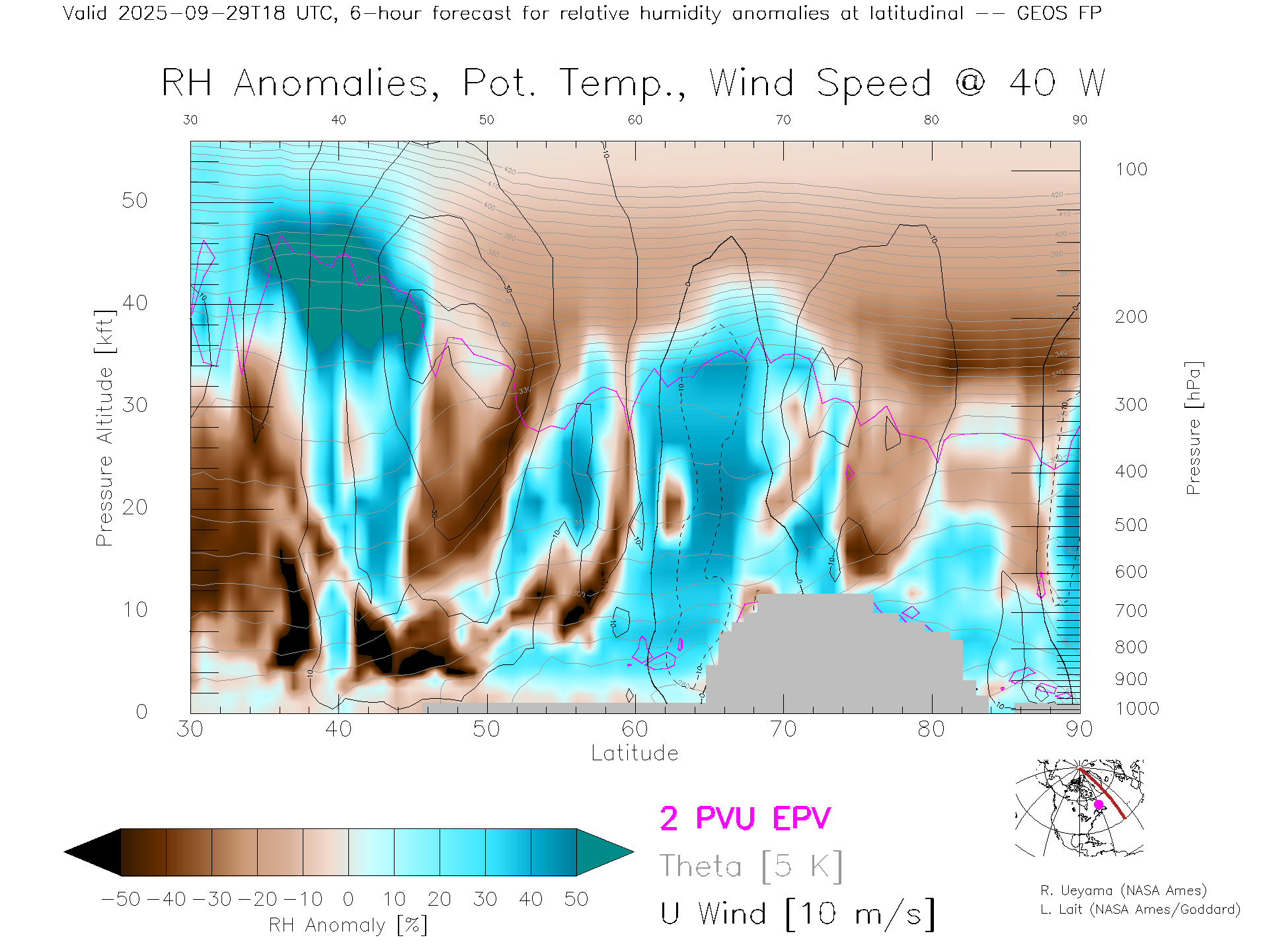 GEOS Forecast Rel. Hum. X-Section (40 W)