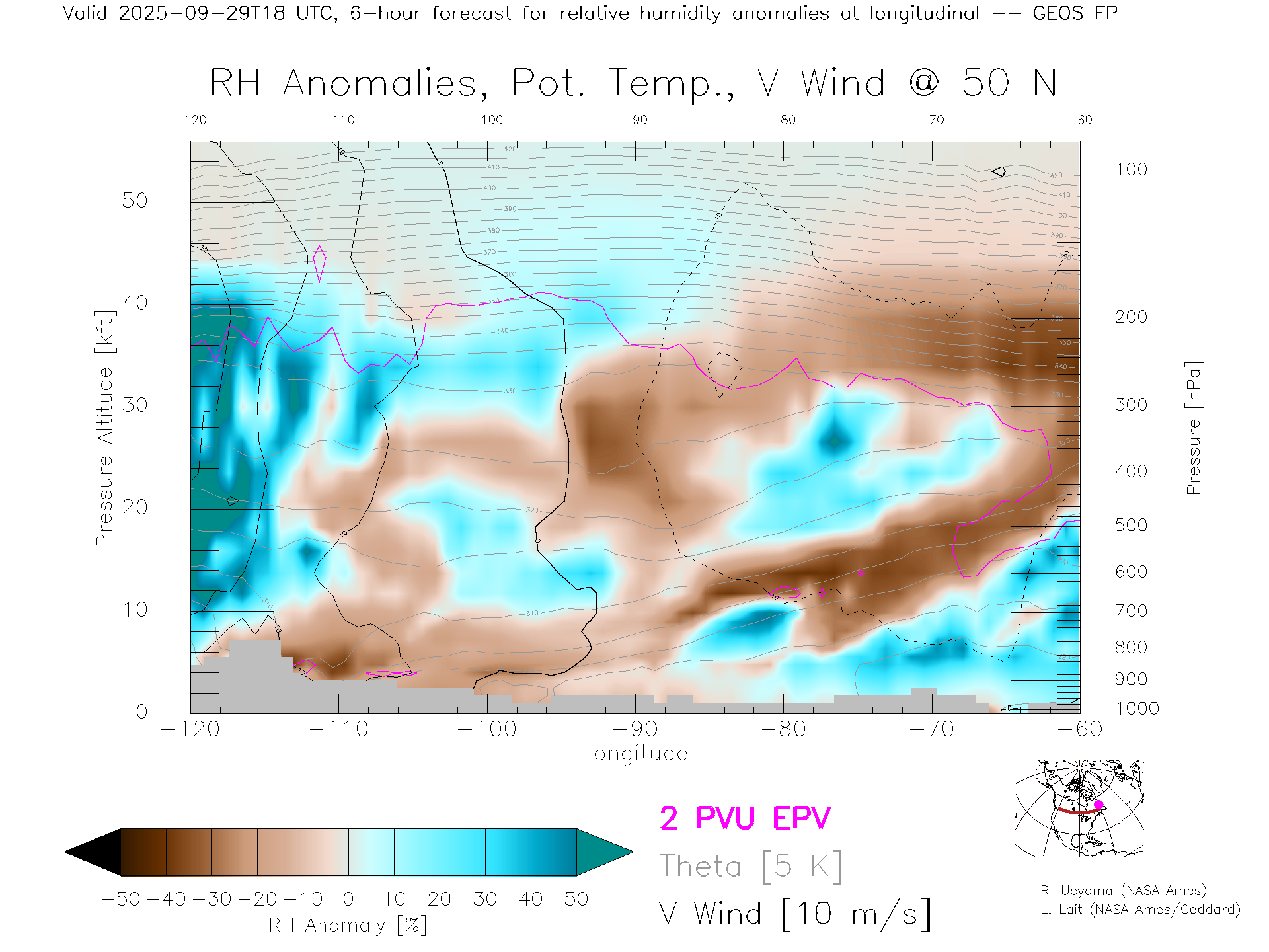GEOS Forecast Rel. Hum. X-Section (50 N)