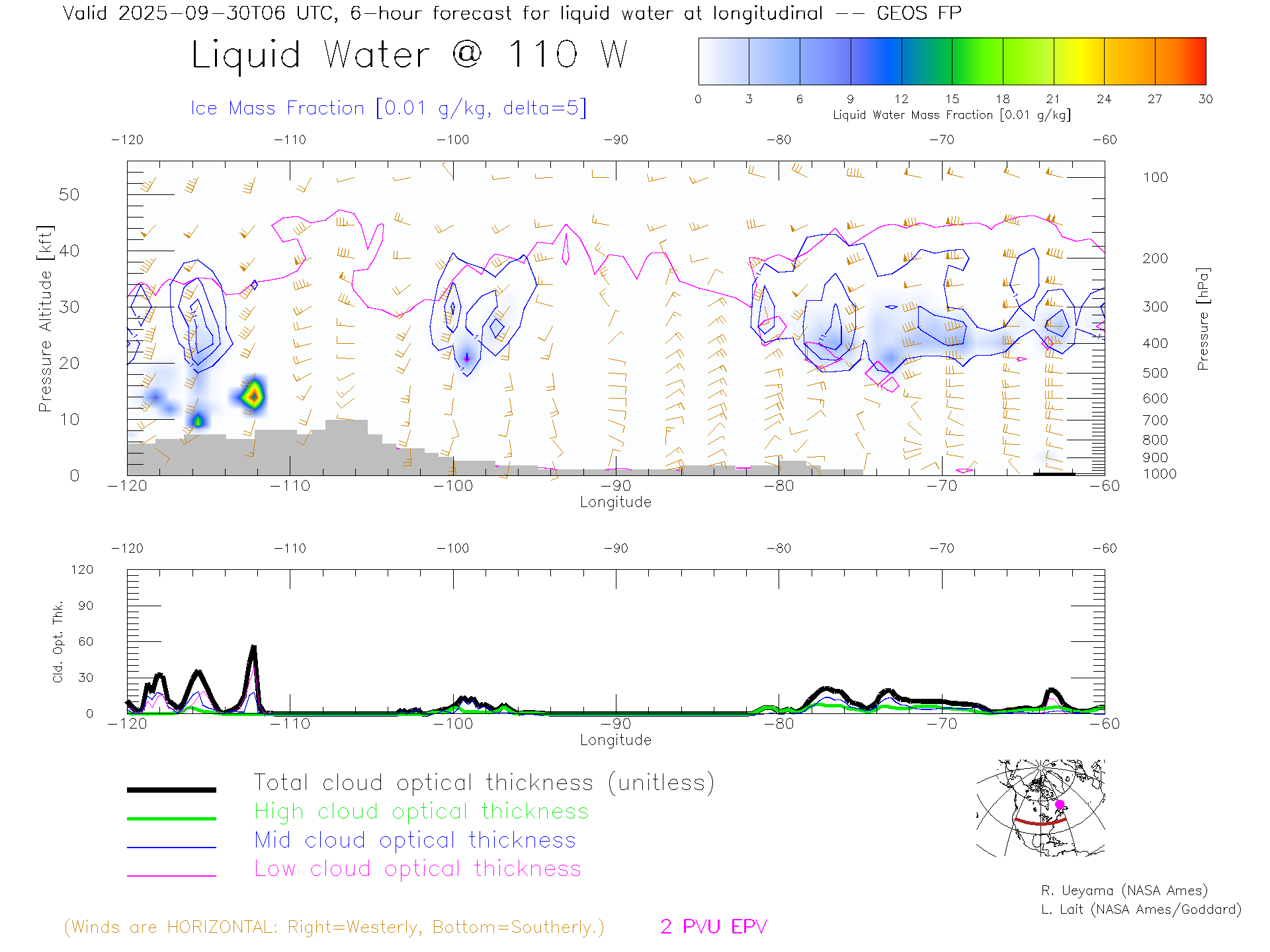 GEOS Forecast Cloud Water Content X-Section (40 N)
