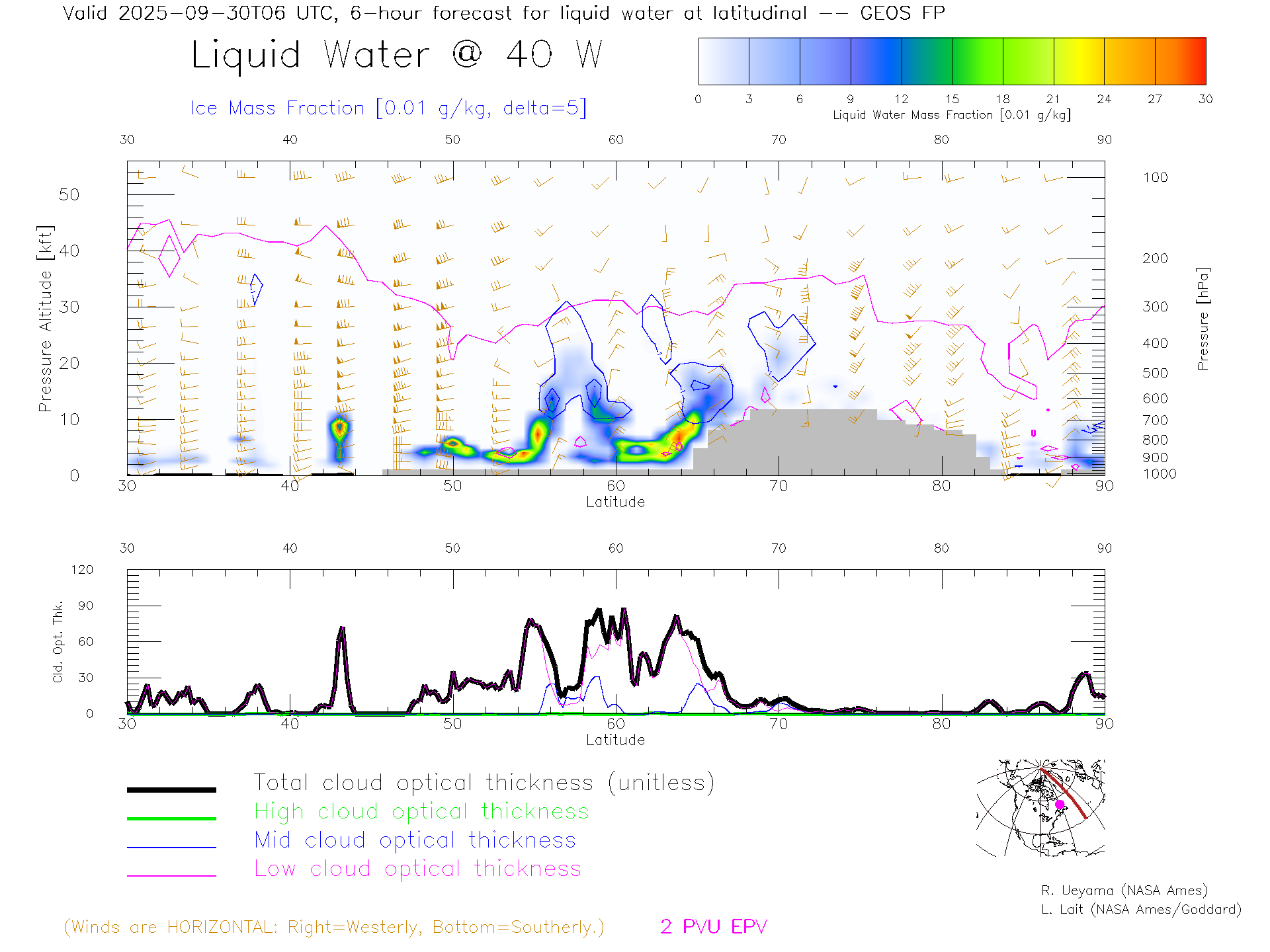 GEOS Forecast Cloud Water Content X-Section (40 W)