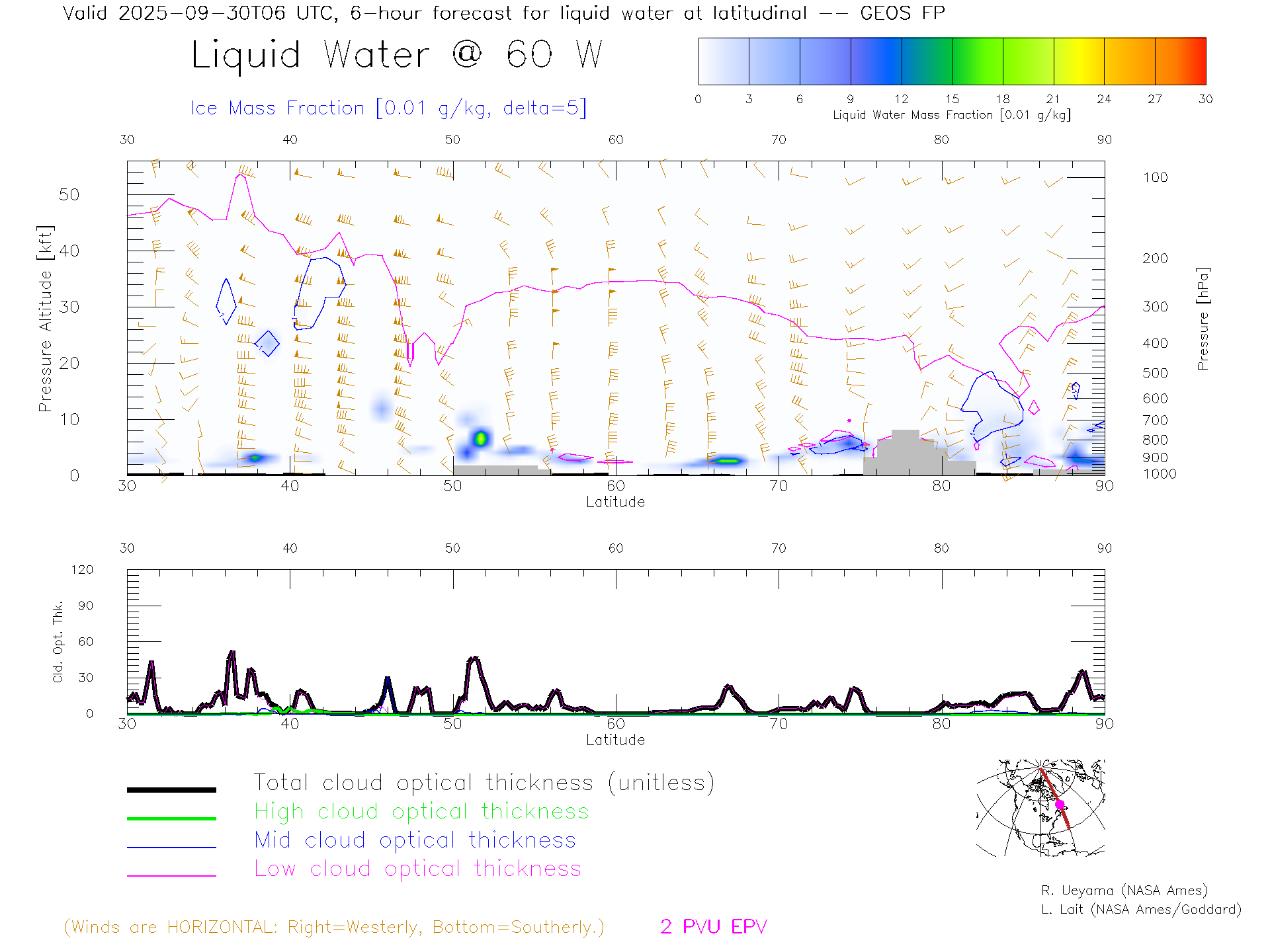 GEOS Forecast Cloud Water Content X-Section (60 W)