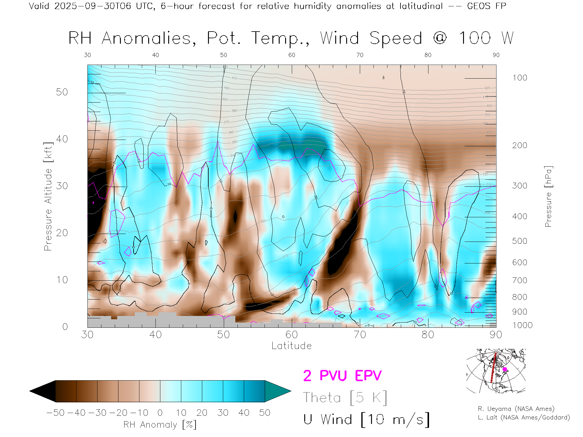 GEOS Forecast Rel. Hum. X-Section (100 W)