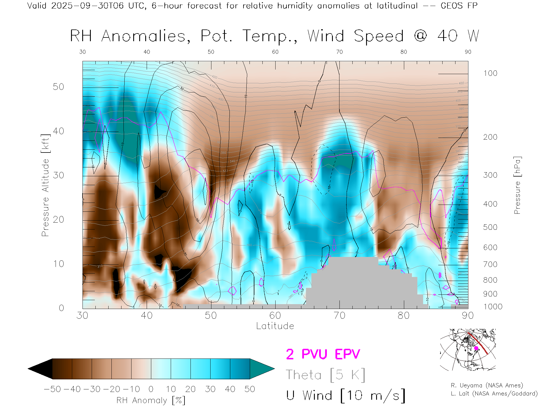 GEOS Forecast Rel. Hum. X-Section (40 W)