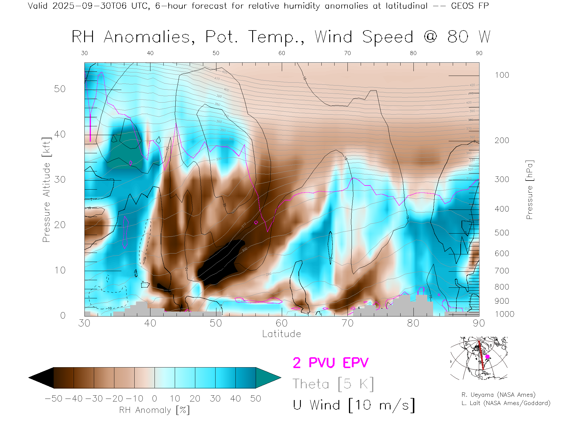 GEOS Forecast Rel. Hum. X-Section (80 W)