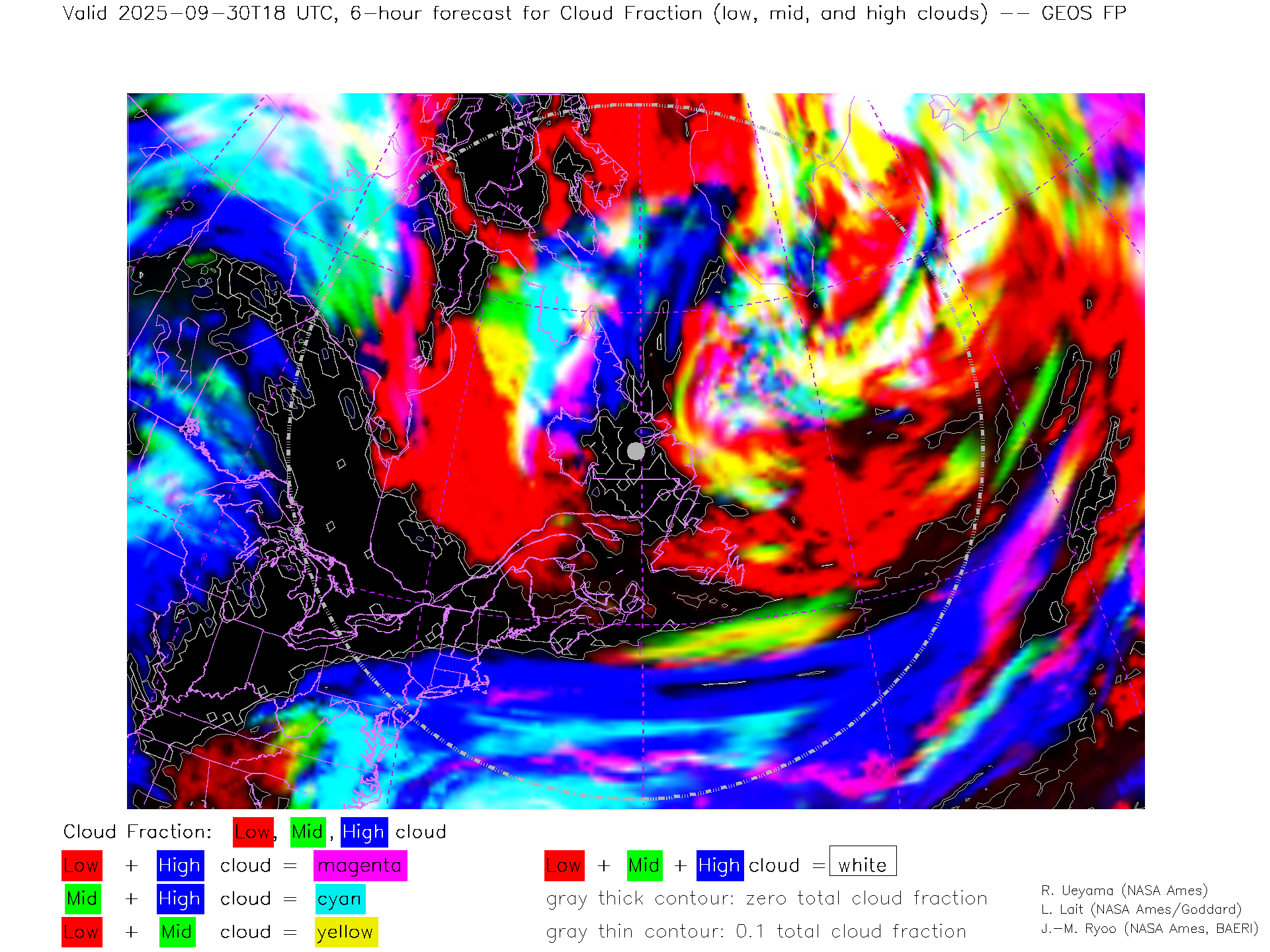 GEOS Forecast Low-, Mid- and High-level Cloud Fraction