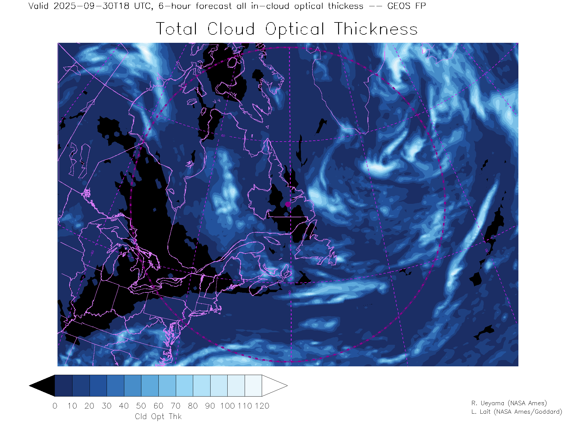 GEOS Forecast Total Cloud Optical thickness
