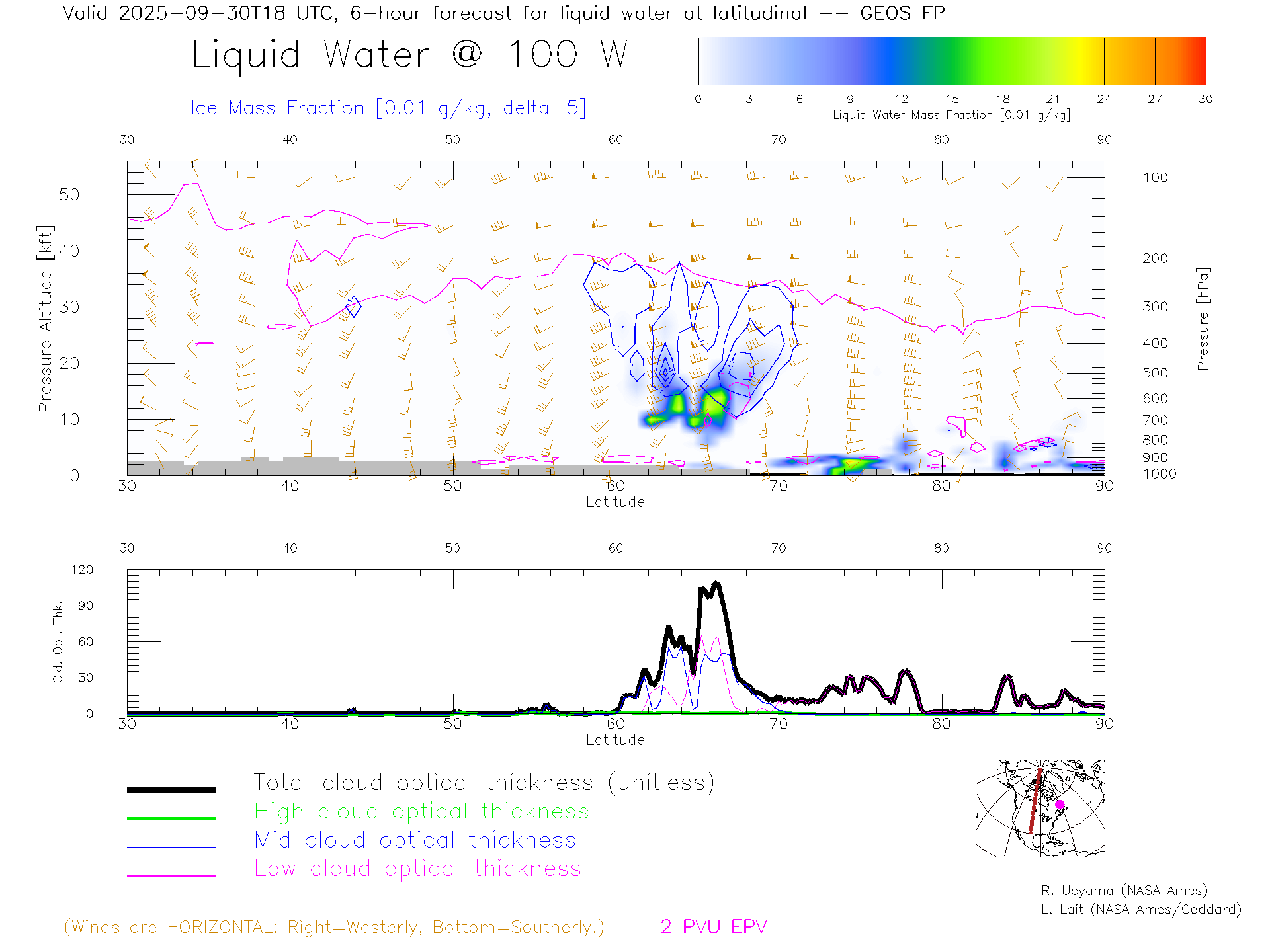 GEOS Forecast Cloud Water Content X-Section (100 W)
