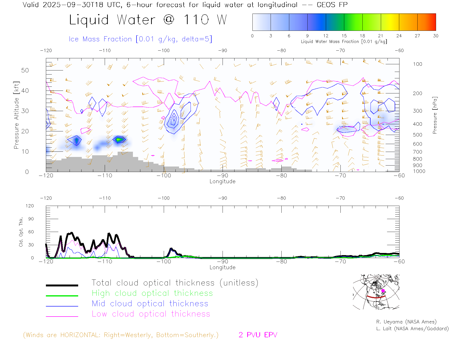 GEOS Forecast Cloud Water Content X-Section (40 N)