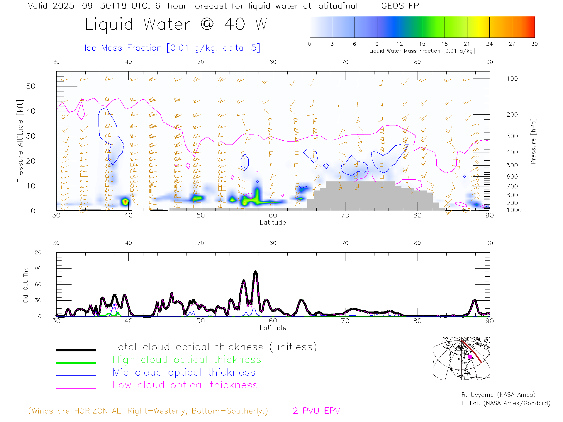 GEOS Forecast Cloud Water Content X-Section (40 W)