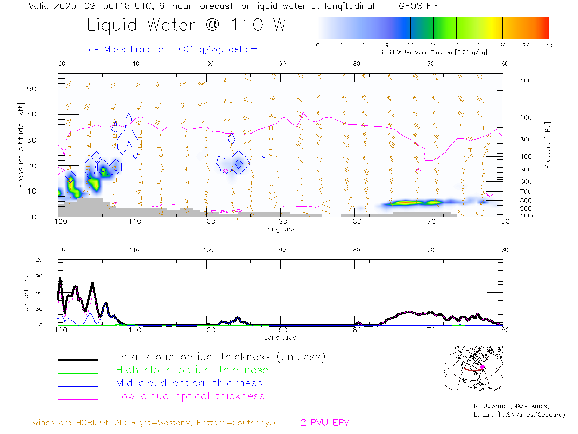 GEOS Forecast Cloud Water Content X-Section (50 N)