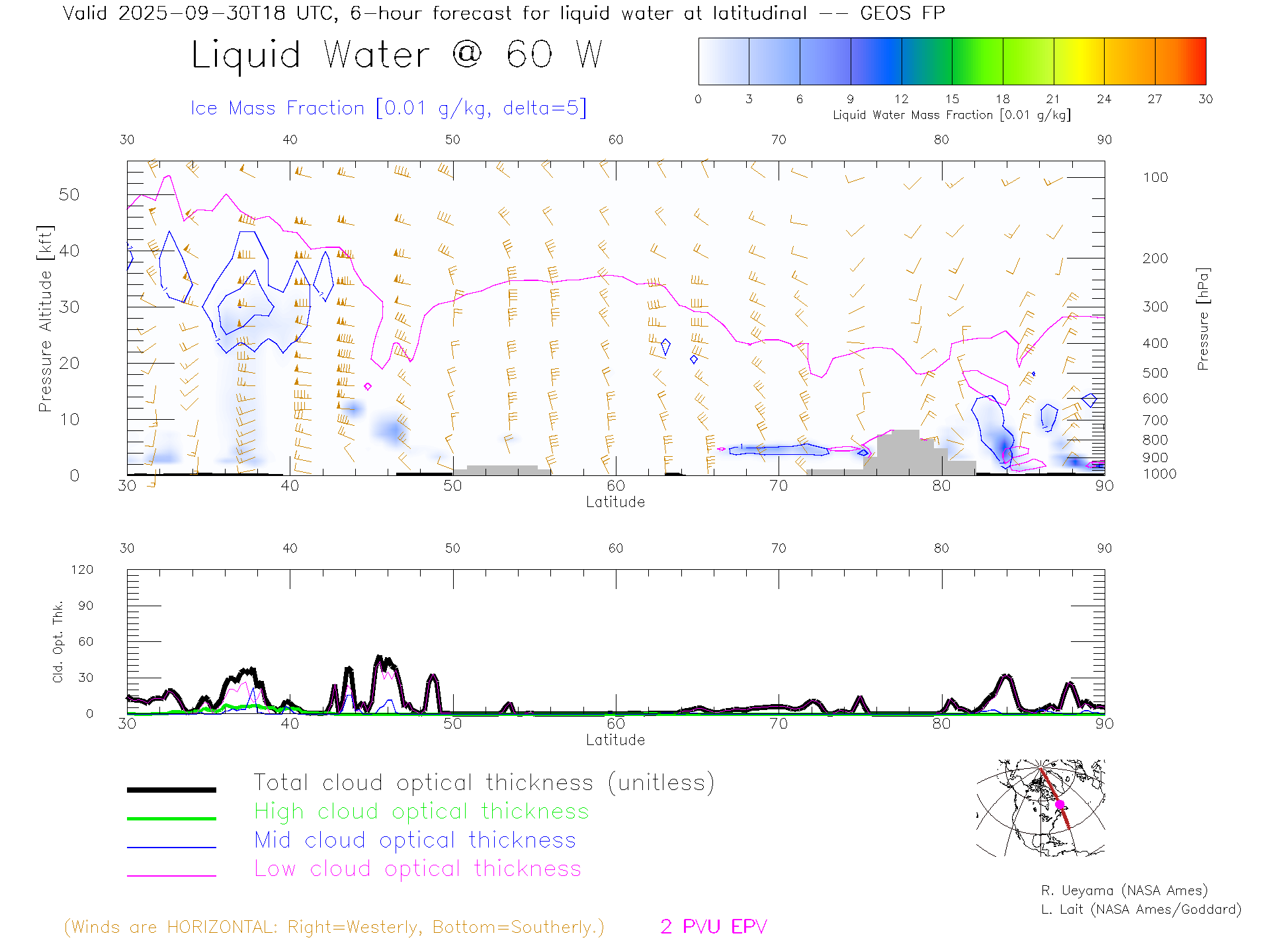 GEOS Forecast Cloud Water Content X-Section (60 W)