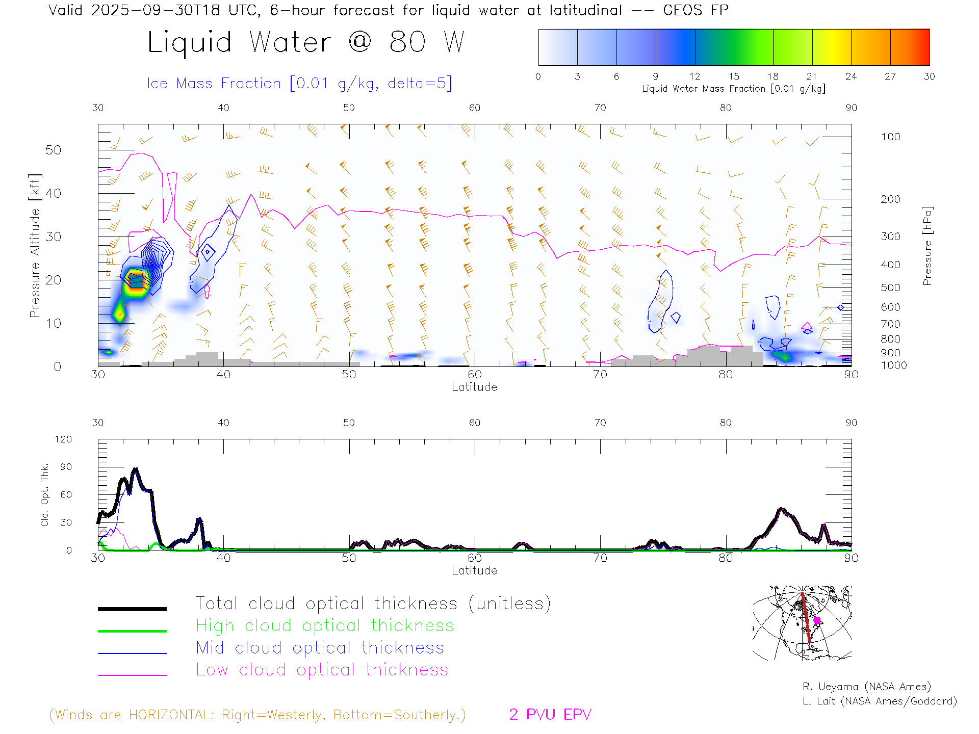 GEOS Forecast Cloud Water Content X-Section (80 W)