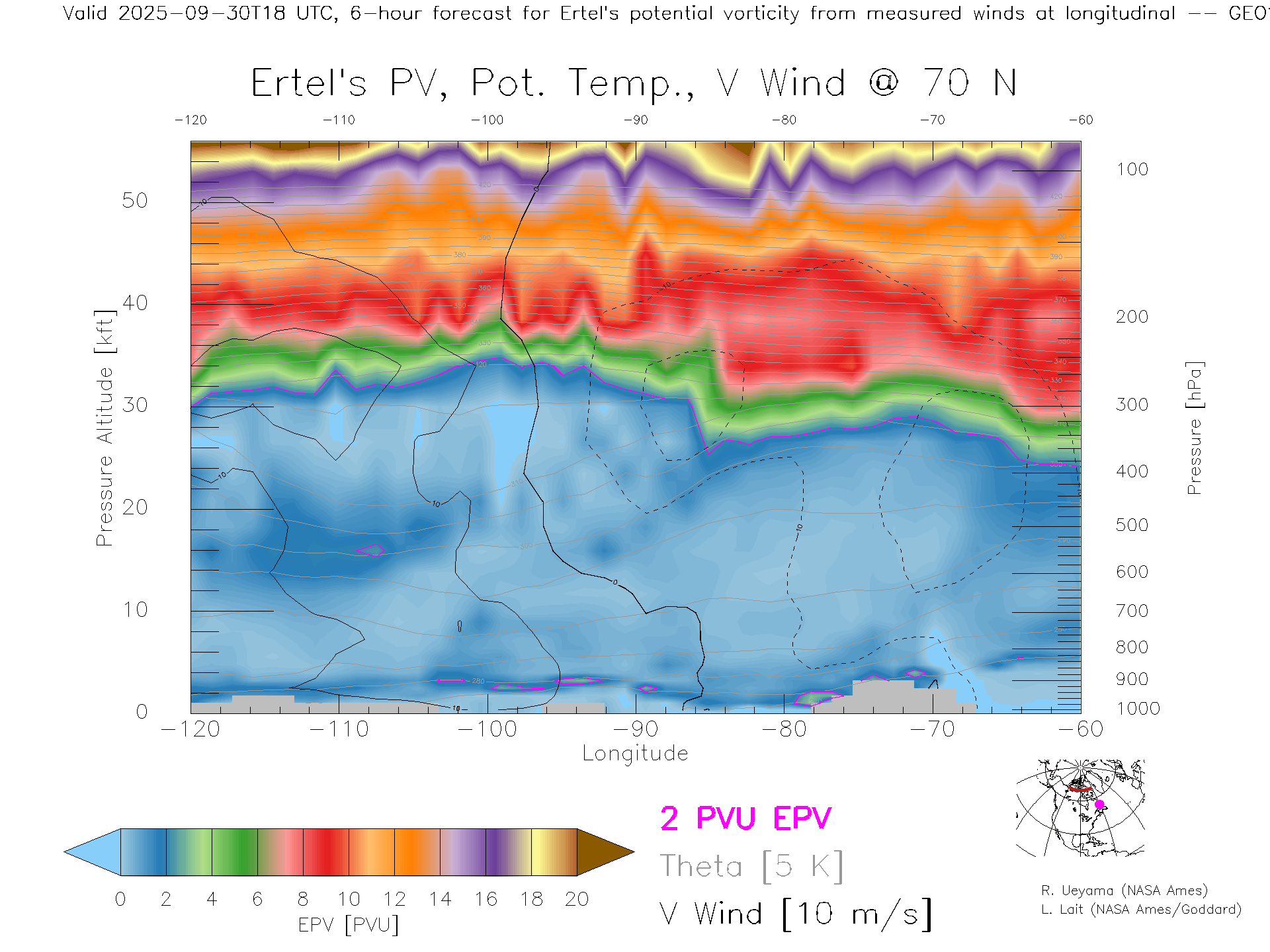 GEOS Forecast PV X-Section (70 N)