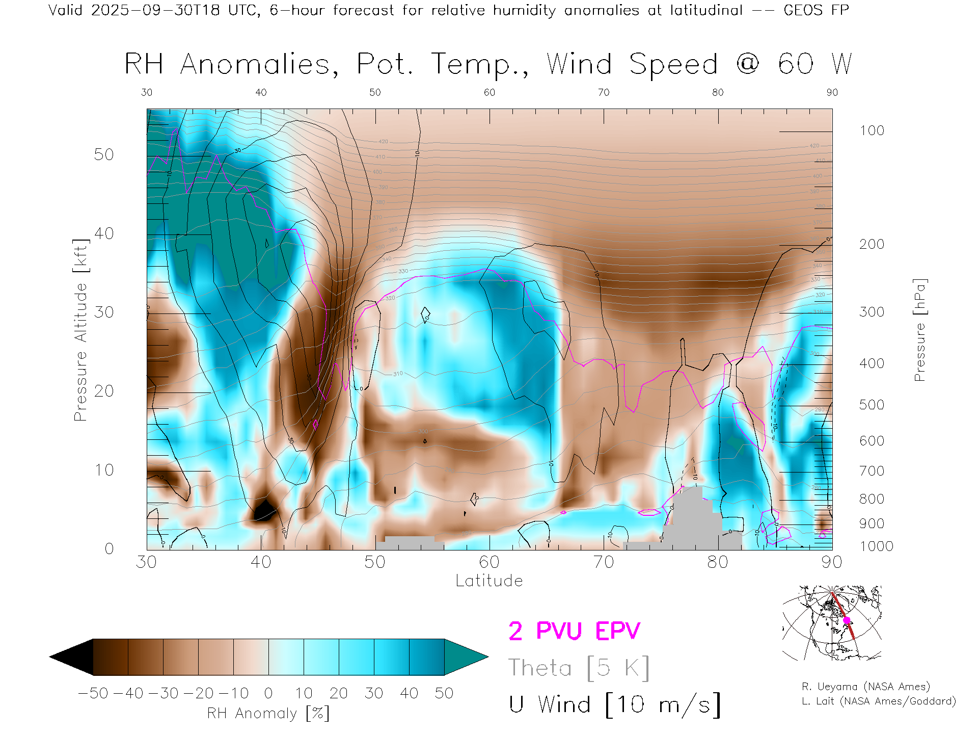 GEOS Forecast Rel. Hum. X-Section (60 W)