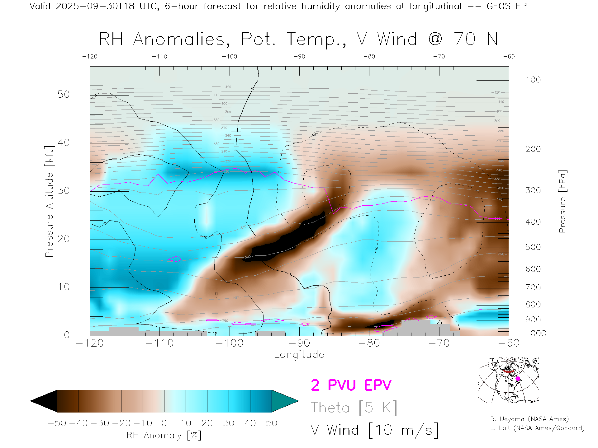 GEOS Forecast Rel. Hum. X-Section (70 N)