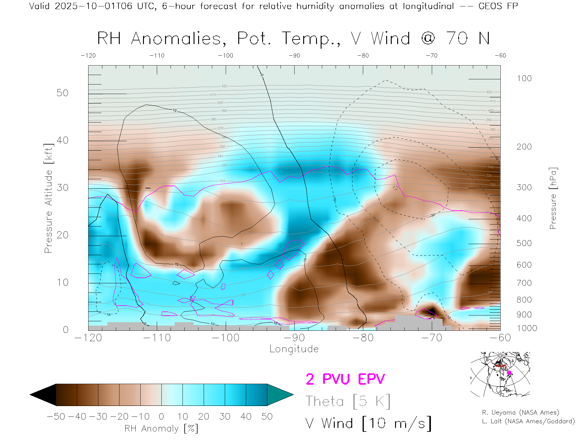 GEOS Forecast Rel. Hum. X-Section (70 N)