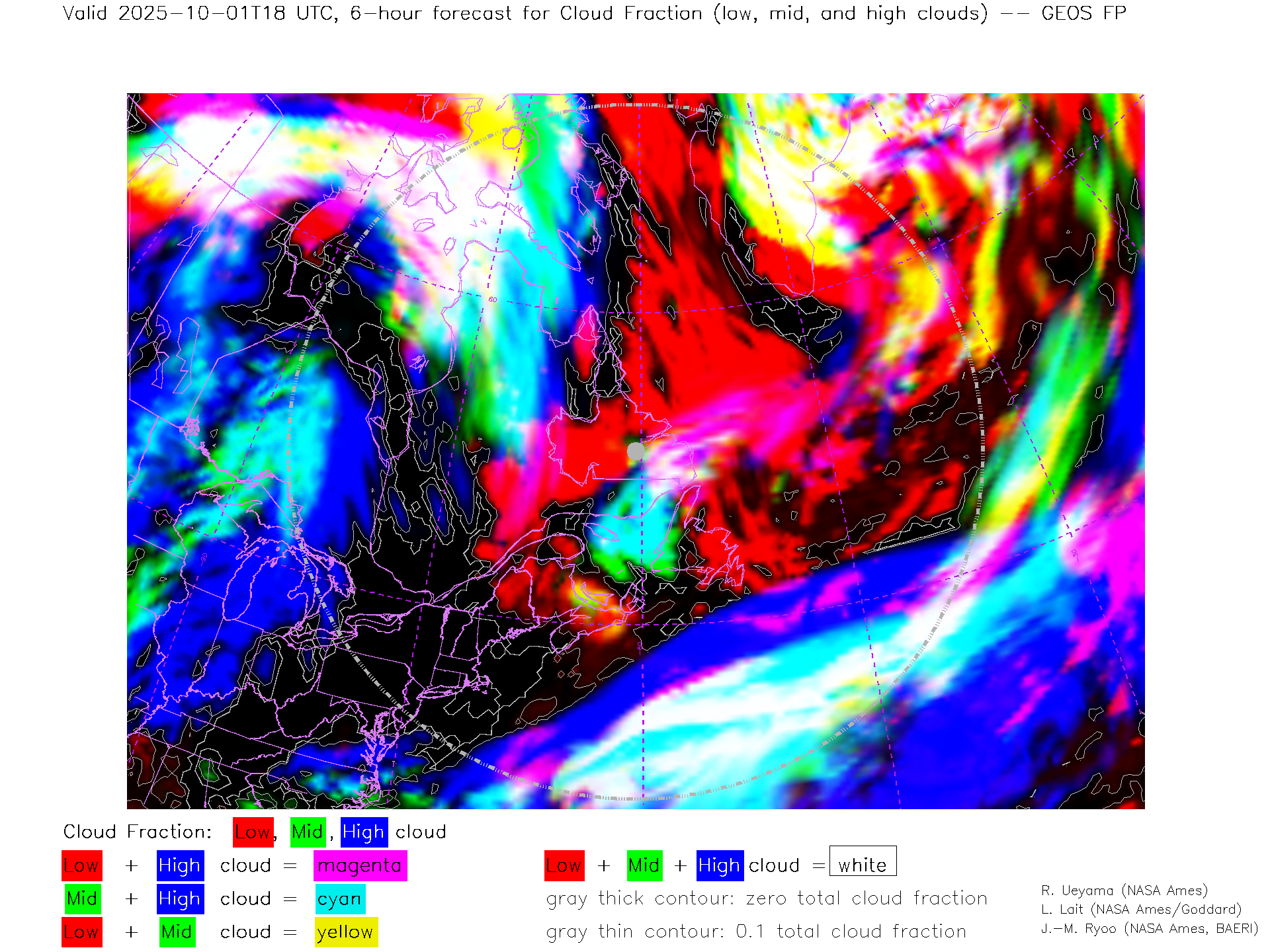 GEOS Forecast Low-, Mid- and High-level Cloud Fraction