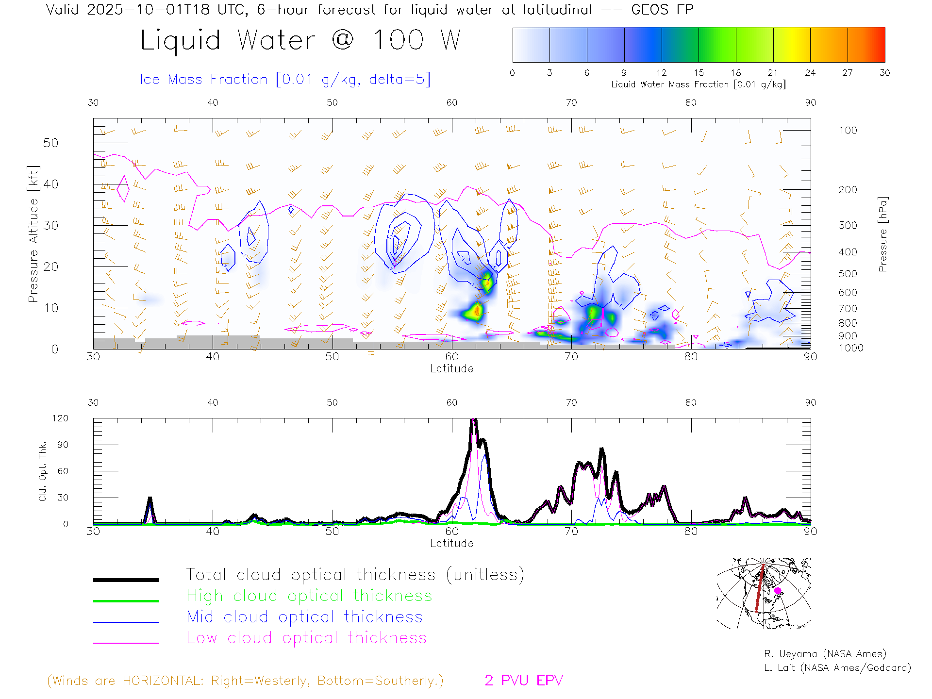GEOS Forecast Cloud Water Content X-Section (100 W)