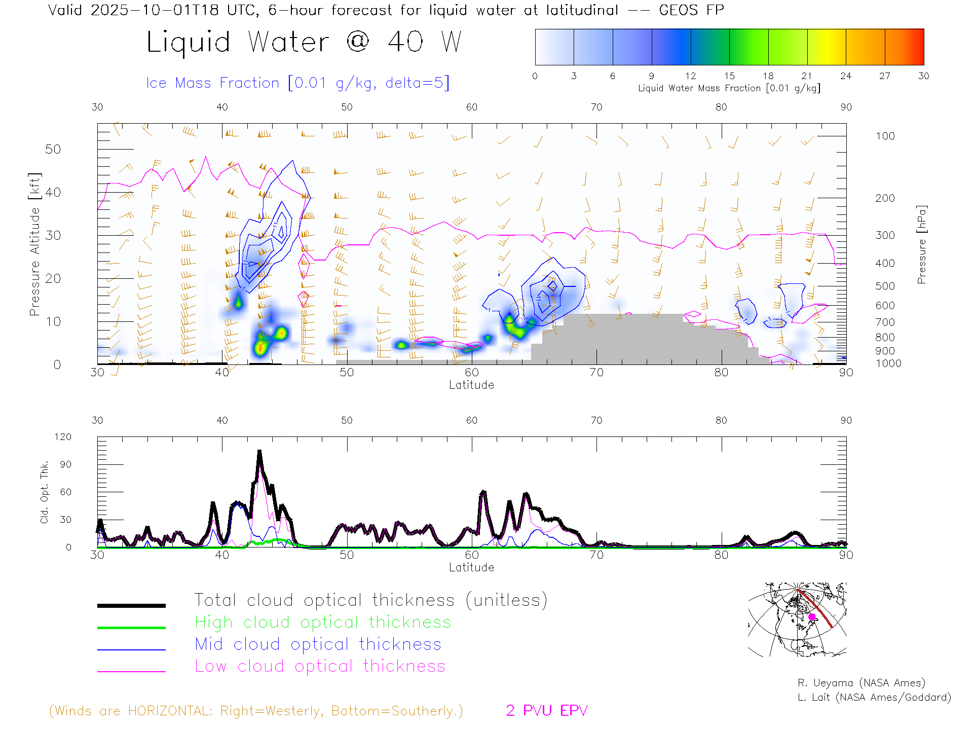 GEOS Forecast Cloud Water Content X-Section (40 W)