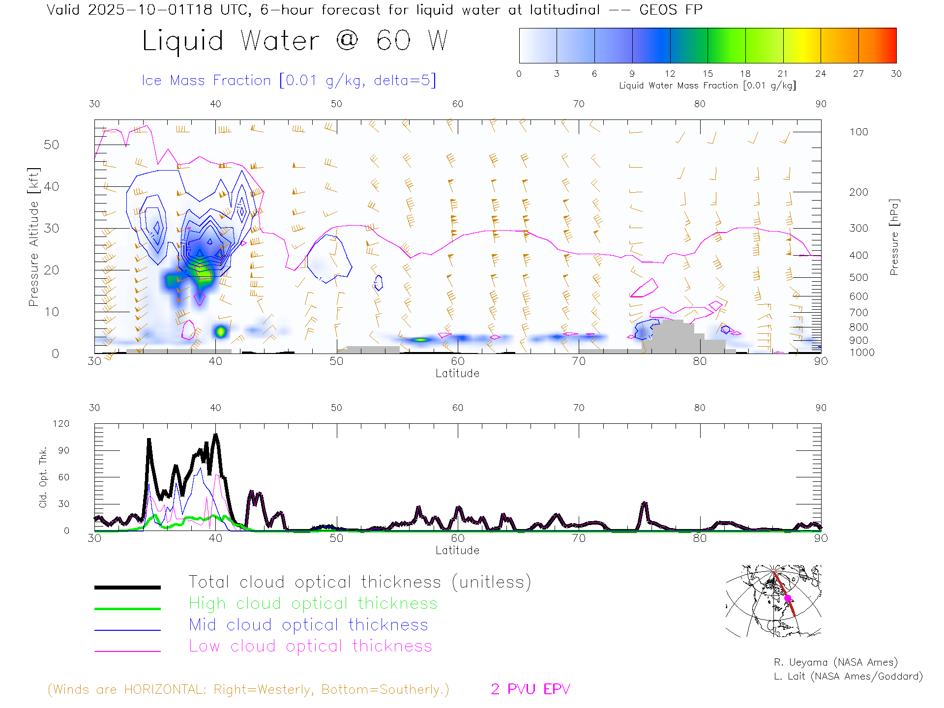 GEOS Forecast Cloud Water Content X-Section (60 W)