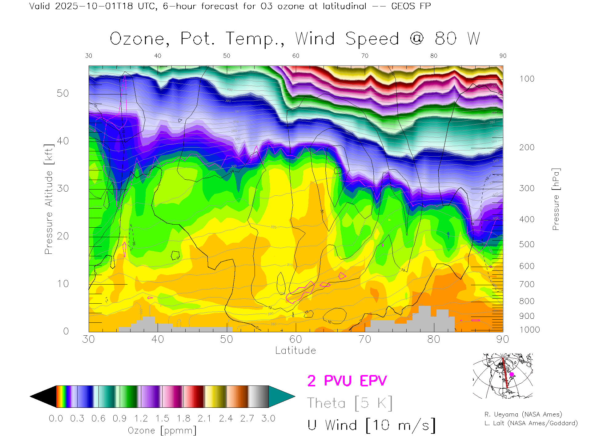 GEOS Forecast Ozone X-Section (80 W)