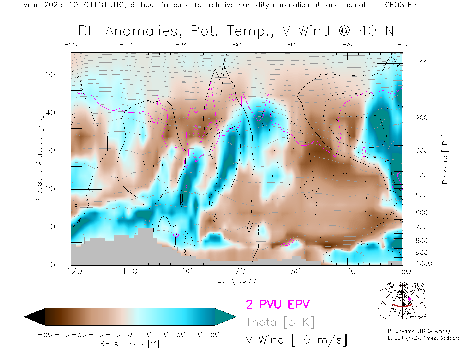 GEOS Forecast Rel. Hum. X-Section (40 N)