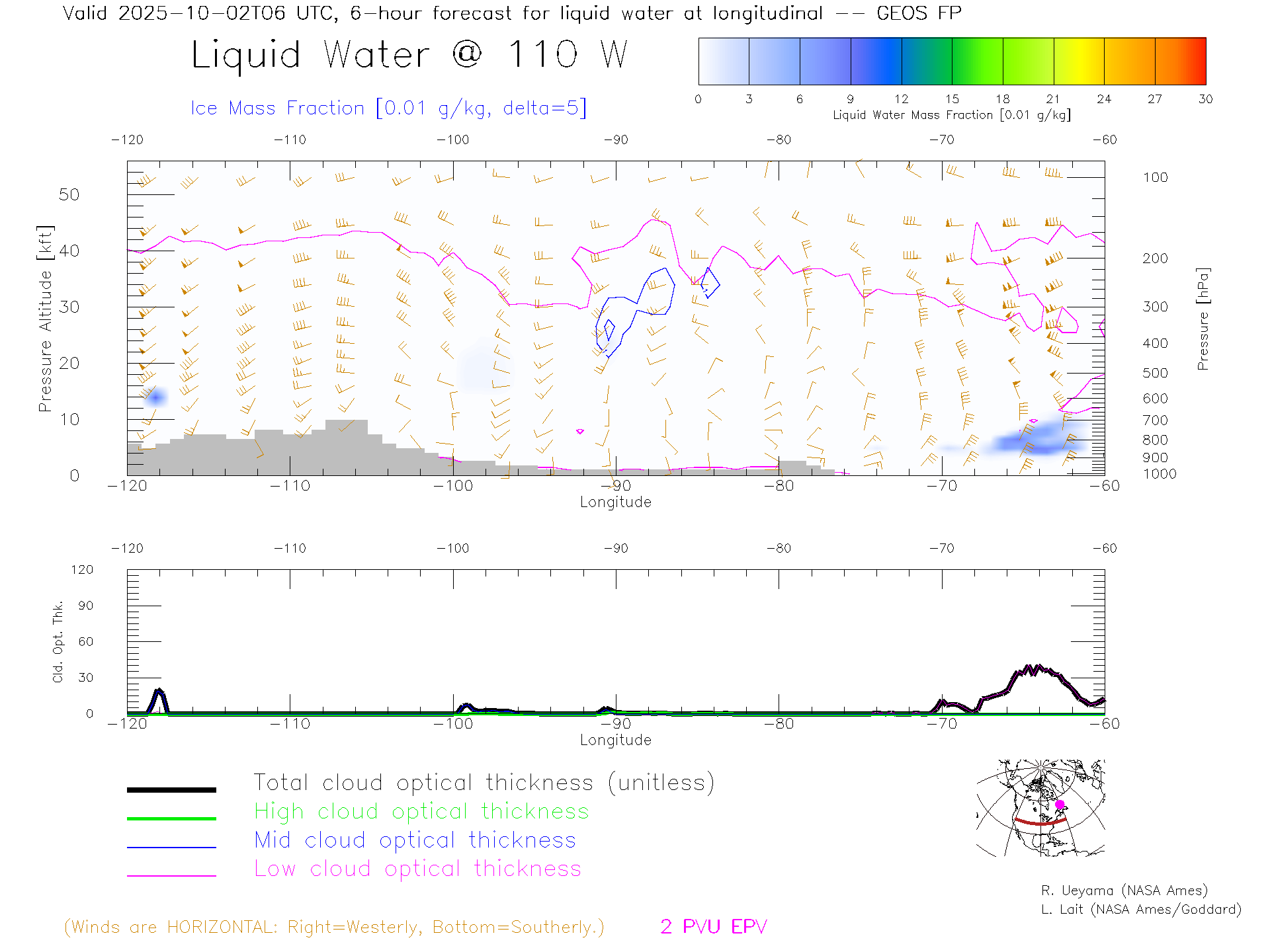 GEOS Forecast Cloud Water Content X-Section (40 N)