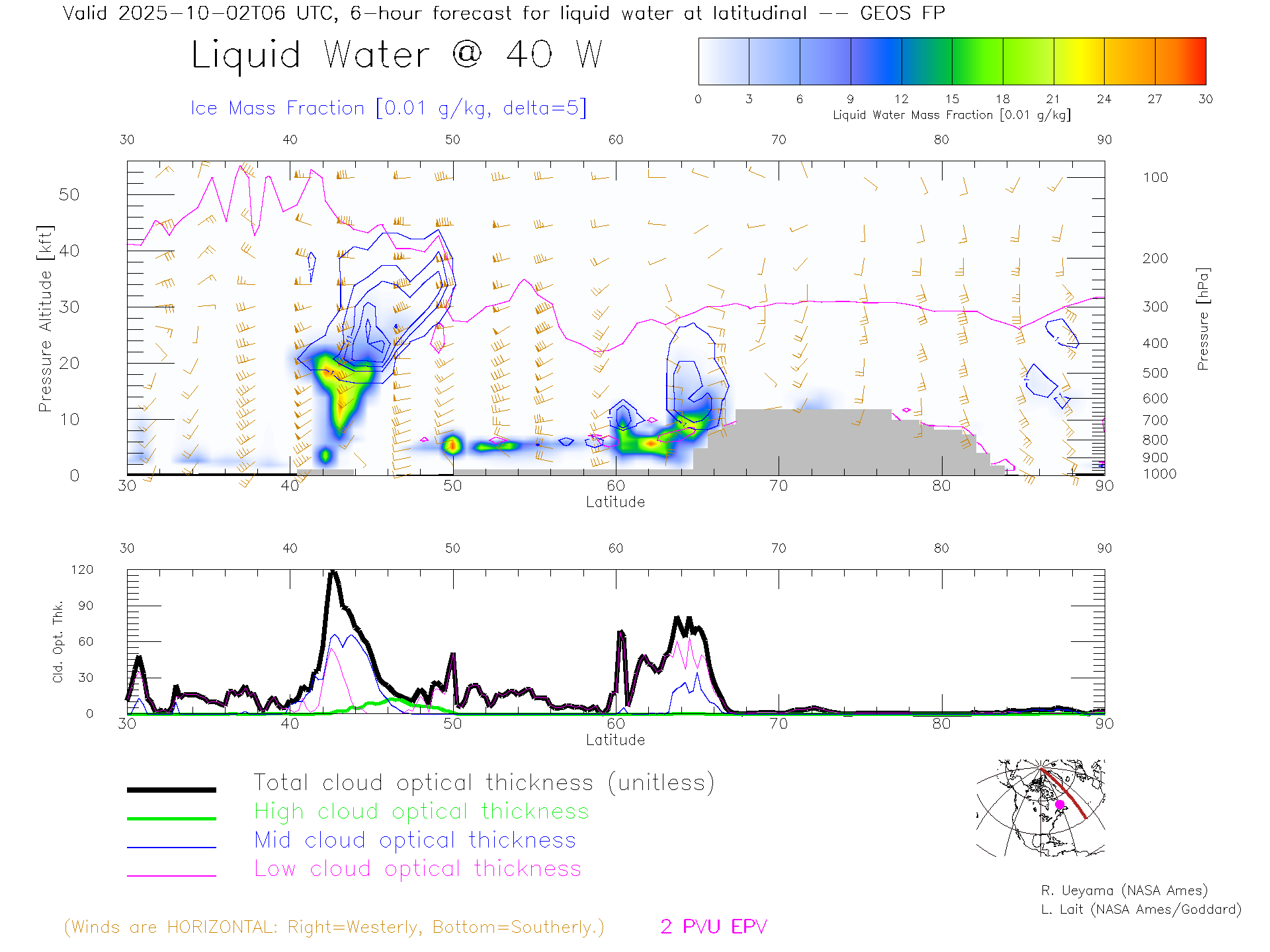 GEOS Forecast Cloud Water Content X-Section (40 W)
