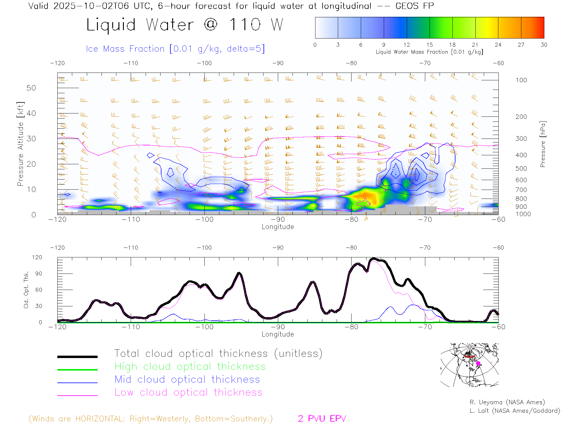 GEOS Forecast Cloud Water Content X-Section (70 N)